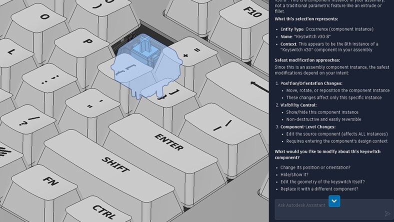 Turn questions into action. Ask for work to be done and move projects forward with AI that understands your model and executes inside Fusion.